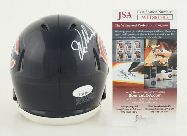 Riddell Chicago Bears Speed mini helmet. Hand-signed by William Perry.The lot / autograph(s) includes an official James Spence Authentication (JSA) hologram and matching COA for authenticity purposes. The signing of this item was witnessed by JSA.Authentication: JSA COA