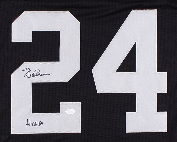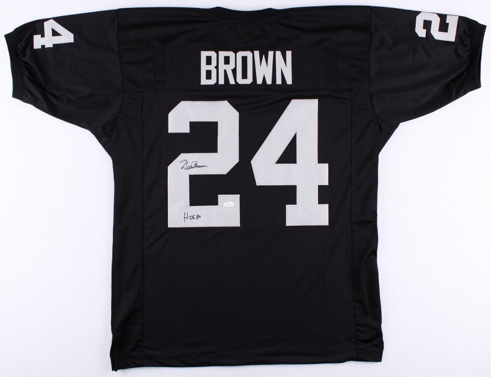Custom on-field style jersey. Everything is sewn on, size XL. Hand-signed and inscribed in black felt tip pen by Willie Brown (HOF). The autograph includes an official Sports Integrity (SI) hologram and matching COA for authenticity purposes. The signing of this item was witnessed by JSA.Authentication: Sports Integrity COA