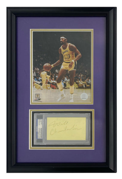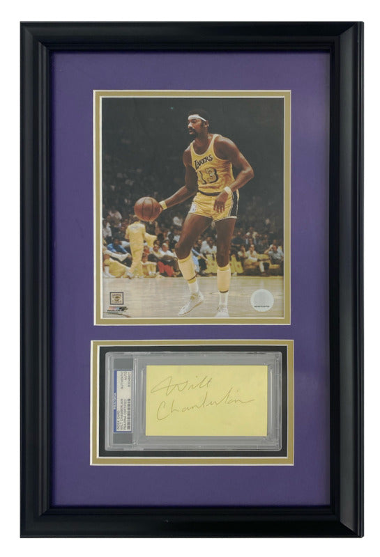 You are bidding on a very rare item. Is a 14" x 22" framed Wilt Chamberlain display. Included with this display is a PSA/DNA encapsulated certified authentic autograph from Wilt Chamberlain. This highly collectible display is a must have for any basketball fan, especially vintage. This will make a great addition to the collection of any true sports fan.