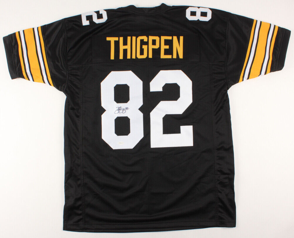Custom on-field style jersey. Everything is sewn on, size XL. Hand-signed in black felt tip pen by Yancey Thigpen. The autograph includes an official Total Sports Enterprises (TSE) hologram and matching COA for authenticity purposes. Authentication: Total Sports Enterprises COA