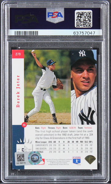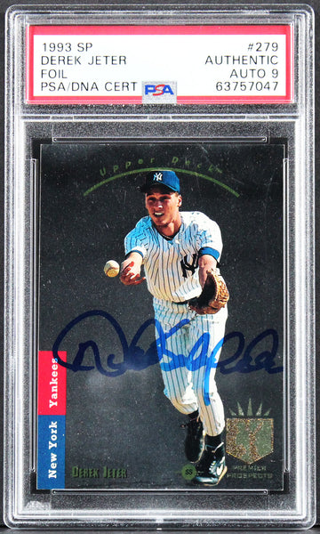 This Autographed Auto Mint 9! 1993 SP Foil #279 Rookie Card has been Personally Signed by Derek Sanderson Jeter of the New York Yankees. This item is 100% Authentic, it comes slabbed and authenticated by PSA/DNA. The authenticity can be verified on Professional Sports Authenticator website.