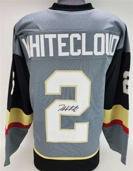 Custom on-ice style jersey. Everything is sewn on, size XL. Hand-signed by Zach Whitecloud.The lot / autograph(s) includes an official James Spence Authentication (JSA) hologram and matching COA for authenticity purposes. The signing of this item was witnessed by JSA.Authentication: JSA COA
