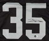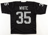 This autographed custom on-field style adult XL jersey has been personally hand-signed by Zamir White of the Las Vegas Raiders. This autograph is certified by Beckett Authentication Services (BAS) Witness Certification. That means that a Beckett representative was present when this item was signed. It comes with the numbered authentication hologram with a QR code that verifies the authentication on the Beckett website.Custom on-field style jerseys are a more affordable option for autograph seekers. These jerseys do not have any brand name or tags and are made in the Philippines. They feature stitched on names and numbers and are made to look very similar to the on-field jerseys that the players wear. These custom jerseys are very commonly used in the memorabilia industry.